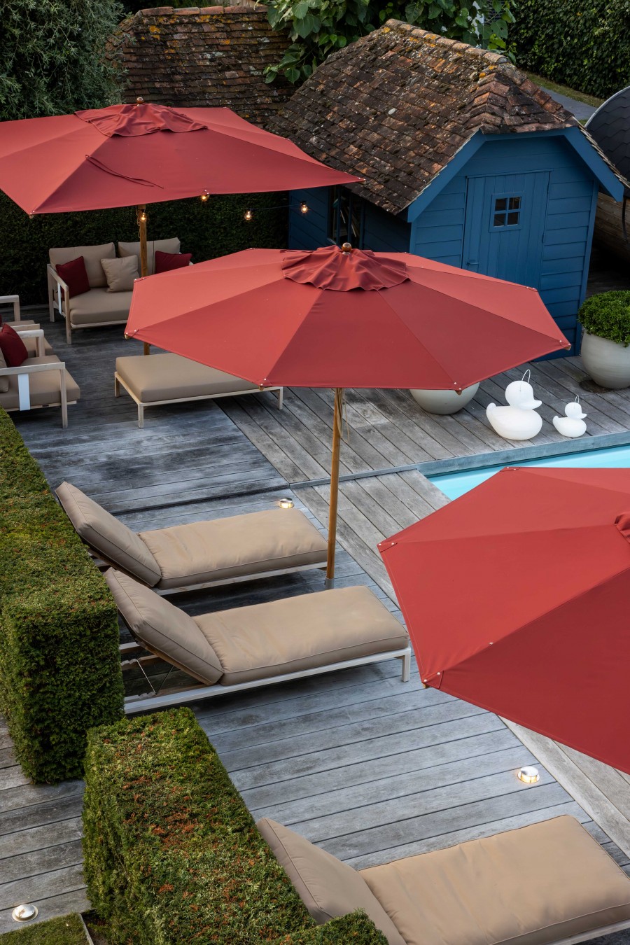 Guests enjoy the gracious interior of the house and the tranquility of the garden with a heated swimming pool (30 degrees, from May to October) and, in the winter season, our wood-fired barrel sauna.